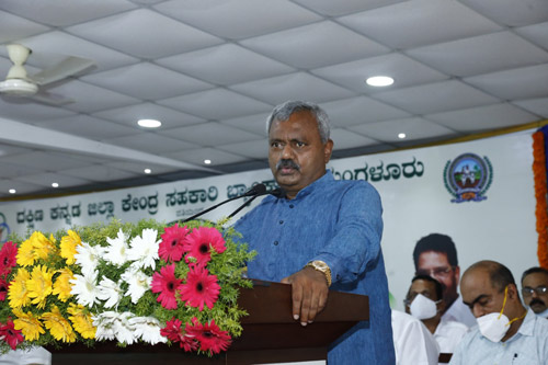 ದಕ್ಷಿಣ ಕನ್ನಡ ಜಿಲ್ಲಾ ಕೇಂದ್ರ ಸಹಕಾರಿ ಬ್ಯಾಂಕಿನ ಅಧ್ಯಕ್ಷರಾದ ಡಾ|ಎಂ.ಎನ್ ರಾಜೇಂದ್ರ ಕುಮಾರ್ ಅವರು ಸ್ವಾಗತಿಸಿ, ಸಚಿವರನ್ನು ಸನ್ಮಾನಿಸಿದರು. ಬ್ಯಾಂಕ್ ಕೃಷಿಕರಿಗೆ ಹೆಚ್ಚಿನ ಪ್ರಮಾಣದಲ್ಲಿ ಅಲ್ಪಾವಧಿ ಕೃಷಿ ಸಾಲವನ್ನು ನೀಡಿದೆ. ವರದಿ ವರ್ಷದಲ್ಲಿ ಕೃಷಿ ಹಾಗೂ ಕೃಷಿ ಅಭಿವೃದ್ಧಿಗೆ ಅಲ್ಪಾವಧಿ ಸಾಲವಾಗಿ ರೂ.1596.04 ಕೋಟಿ ಹಾಗೂ ಮಧ್ಯಮಾವಧಿ ಸಾಲ ರೂ.129.34 ಕೋಟಿ ಸಾಲ ನೀಡಿದ್ದು, ಹೀಗೆ ಒಟ್ಟು ಕೃಷಿ ಕ್ಷೇತ್ರಕ್ಕೆ ರೂ.1725.38 ಕೋಟಿ ರೂ. ಸಾಲ ನೀಡಿದೆ. ಮಾತ್ರವಲ್ಲ ಕೇಂದ್ರ ಸರಕಾರದ ಆತ್ಮನಿರ್ಭರ ಯೋಜನೆಯಡಿಯಲ್ಲಿ ಹೈನುಗಾರಿಕೆ, ಮೀನುಗಾರಿಕೆ ಉದ್ದೇಶಗಳಿಗೆ ಸಾಲ ನೀಡಿದ್ದು, ಒಟ್ಟು 7418 ಫಲಾನುಭವಿಗಳಿಗೆ ಬ್ಯಾಂಕ್ ರೂ.16.89 ಕೋಟಿ ಸಾಲ ನೀಡಿದೆÉ ಎಂದು ಡಾ|ಎಂ.ಎನ್ ರಾಜೇಂದ್ರ ಕುಮಾರ್ರವರು ಸಚಿವರಿಗೆ ವಿವರಿಸಿದರು.